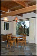 Singing Waters Cottage has a master bedroom with a queen size bed and an ensuite bathroom with a shower and tub combination. The second bathroom is a 2 piece amenity. It has tasteful décor with bamboo wood floors, slate tiles, post and beam ceilings and a gas fireplace. The kitchen is complete with a dishwasher and microwave. The living room has is a pull out coach which is ideal for kids.